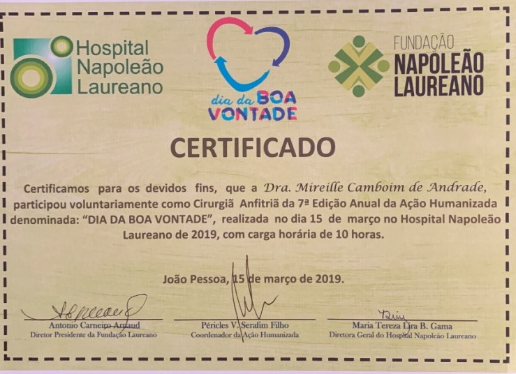 Confira abaixo os diplomas da Dra. Mireille Camboim:
